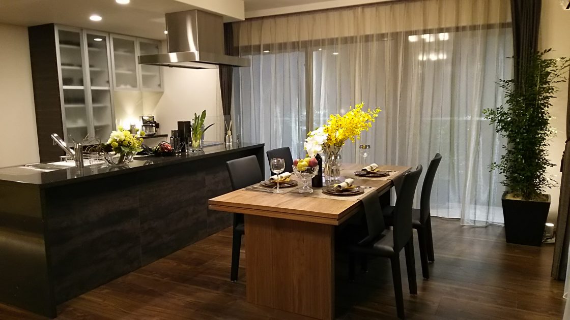 和室のレベルを上げて小上がりにし、間仕切りを撤去、また間接照明を入れることによって特別な空間を演出。上質な和を感じる空間が落ち着いた寛ぎのあるライフスタイルを彷彿とさせる。